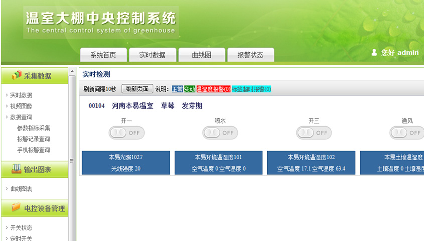 本系統采用RFID及物聯(lián)網(wǎng)技術(shù)建立核心體系架構,并以公共云計算模式為用戶(hù)提供大棚種植業(yè)務(wù)的全面信息服務(wù)及決策服務(wù)。實(shí)現全面監測、智能分析、科學(xué)指導一體化的大棚應用服務(wù)平臺。項目通過(guò)實(shí)時(shí)采集并檢測溫室內的各項參數指標,從而實(shí)現智能化控制溫室內各電控設備的開(kāi)關(guān);同時(shí)通過(guò)設置安全閾值,實(shí)現了超出閾值的警報的功能。